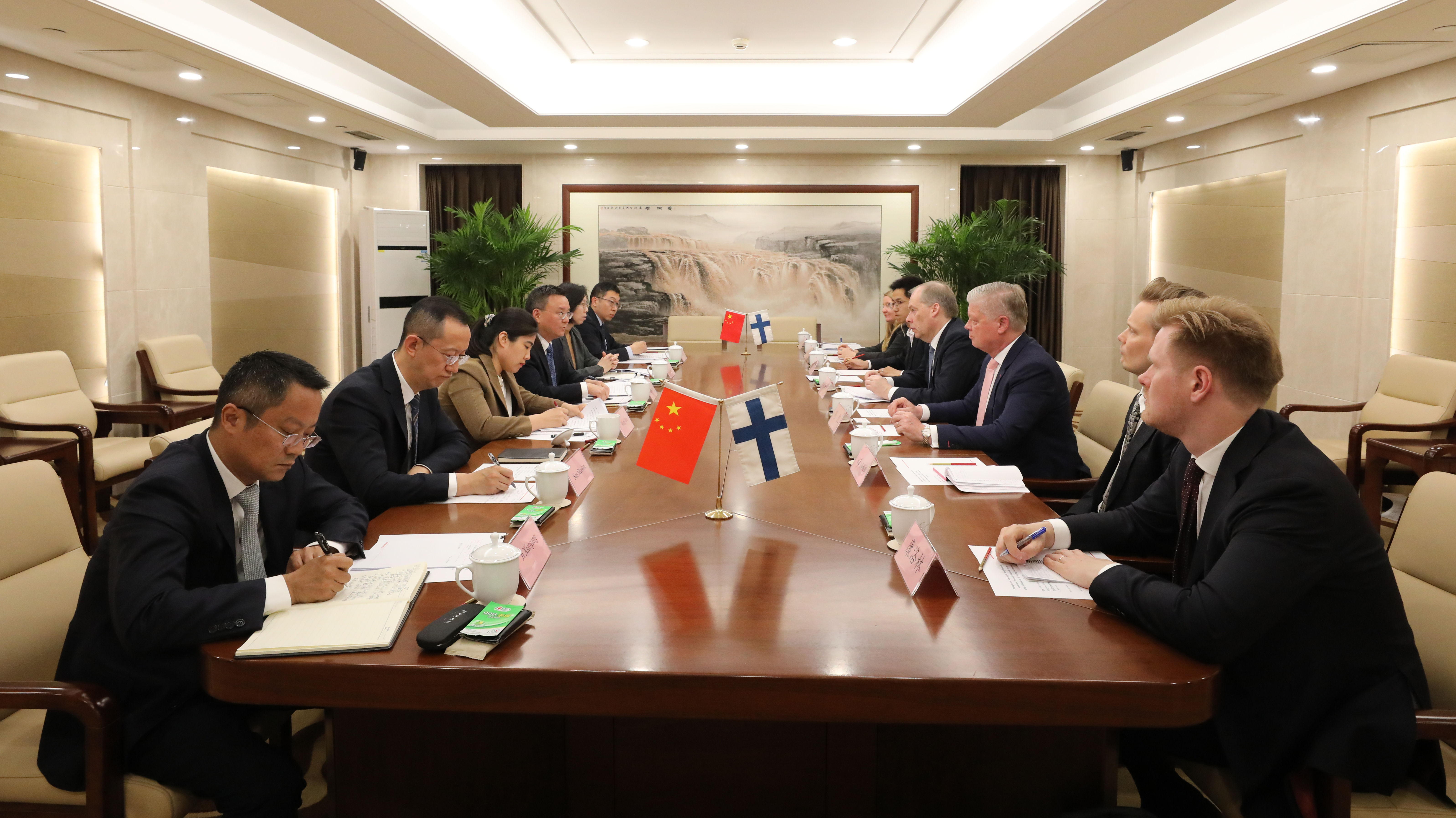 雙方一致表示,去年習(xí)近平主席同來華進(jìn)行國事訪問的斯圖布總統(tǒng)舉行會談,達(dá)成重要共識,共同開辟中芬關(guān)系更加美好廣闊的前景。茍坪表示,今年是中芬建交75周年,愿同芬方一道,落實(shí)好兩國領(lǐng)導(dǎo)人重要共識,加強(qiáng)交流互鑒,拓展合作空間,共享發(fā)展成果,推動中芬面向未來的新型合作伙伴關(guān)系不斷發(fā)展;將繼續(xù)支持中央企業(yè)與芬蘭企業(yè)深化經(jīng)貿(mào)往來,在鞏固傳統(tǒng)產(chǎn)業(yè)合作的同時,拓展信息技術(shù)、數(shù)字經(jīng)濟(jì)、生物技術(shù)等新興產(chǎn)業(yè)合作。