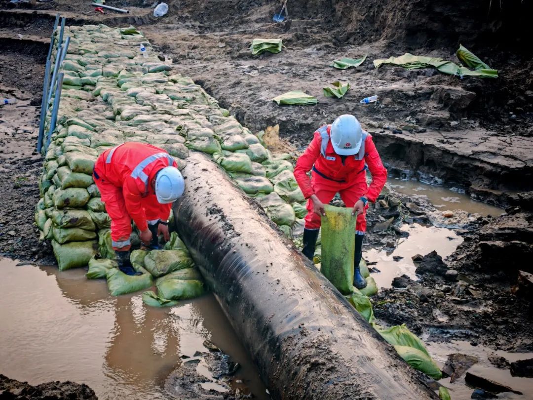 連續(xù)暴雨導(dǎo)致陜京一線管道山西省朔州市應(yīng)縣段突發(fā)多處險(xiǎn)情。國家管網(wǎng)集團(tuán)北京管道公司青年員工主動請戰(zhàn),組建搶險(xiǎn)突擊隊(duì),迅速趕赴搶險(xiǎn)現(xiàn)場,爭分奪秒搬運(yùn)沙袋、加固管道,確保管道安全平穩(wěn)運(yùn)行。