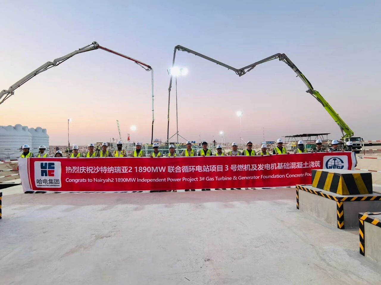 在舉國(guó)歡慶中秋佳節(jié)之際,哈電國(guó)際沙特納瑞亞2項(xiàng)目現(xiàn)場(chǎng)再傳捷報(bào)。繼10月2日順利完成2號(hào)燃機(jī)及發(fā)電機(jī)基礎(chǔ)混凝土澆筑后,經(jīng)過(guò)數(shù)日奮戰(zhàn),10月7日又成功完成3號(hào)燃機(jī)及發(fā)電機(jī)基礎(chǔ)混凝土澆筑工作,以實(shí)干獻(xiàn)禮中秋佳節(jié)。