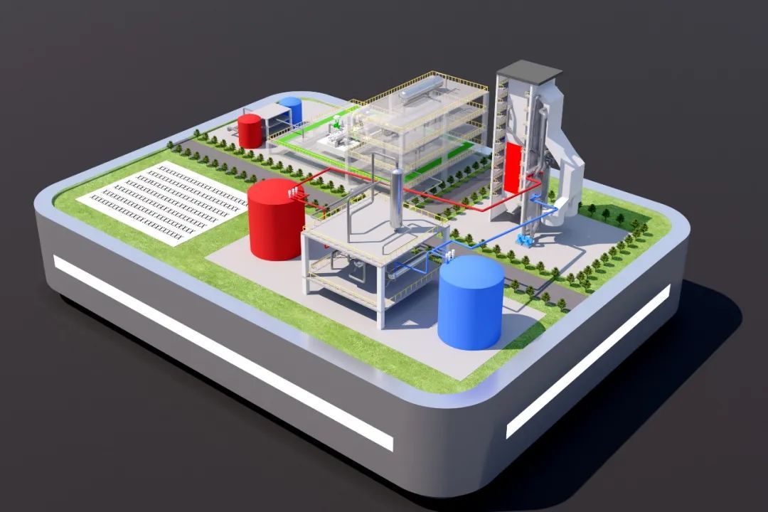世界首臺(套)應(yīng)用鍋爐耦合煙氣熔鹽儲能項(xiàng)目——國能廊坊熱電350兆瓦機(jī)組煙氣熔鹽儲能示范項(xiàng)目儲熱系統(tǒng)概念圖。