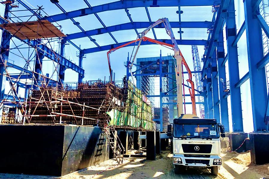 為確保濱佳勝三期項目1號主機基礎底板和上部結構澆筑關鍵節(jié)點順利完成,哈電國際濱佳勝三期項目團隊克服疫情等帶來的不利影響,精心策劃,統(tǒng)一指揮,組織業(yè)主、監(jiān)理、施工單位、主機廠多方聯(lián)合驗收,多次召開驗收會和施工前交底會,科學制定詳細的澆筑施工計劃,合理安排施工工序,確保力能供應,做好應急預案。施工中,各工位協(xié)調配合,經(jīng)過9.5小時連續(xù)作業(yè),1號主機基礎上部結構澆筑工作于當?shù)貢r間11月28日18時36分順利完成,共計澆筑400方混凝土,為后續(xù)1號主機上臺安裝工作奠定了堅實基礎。