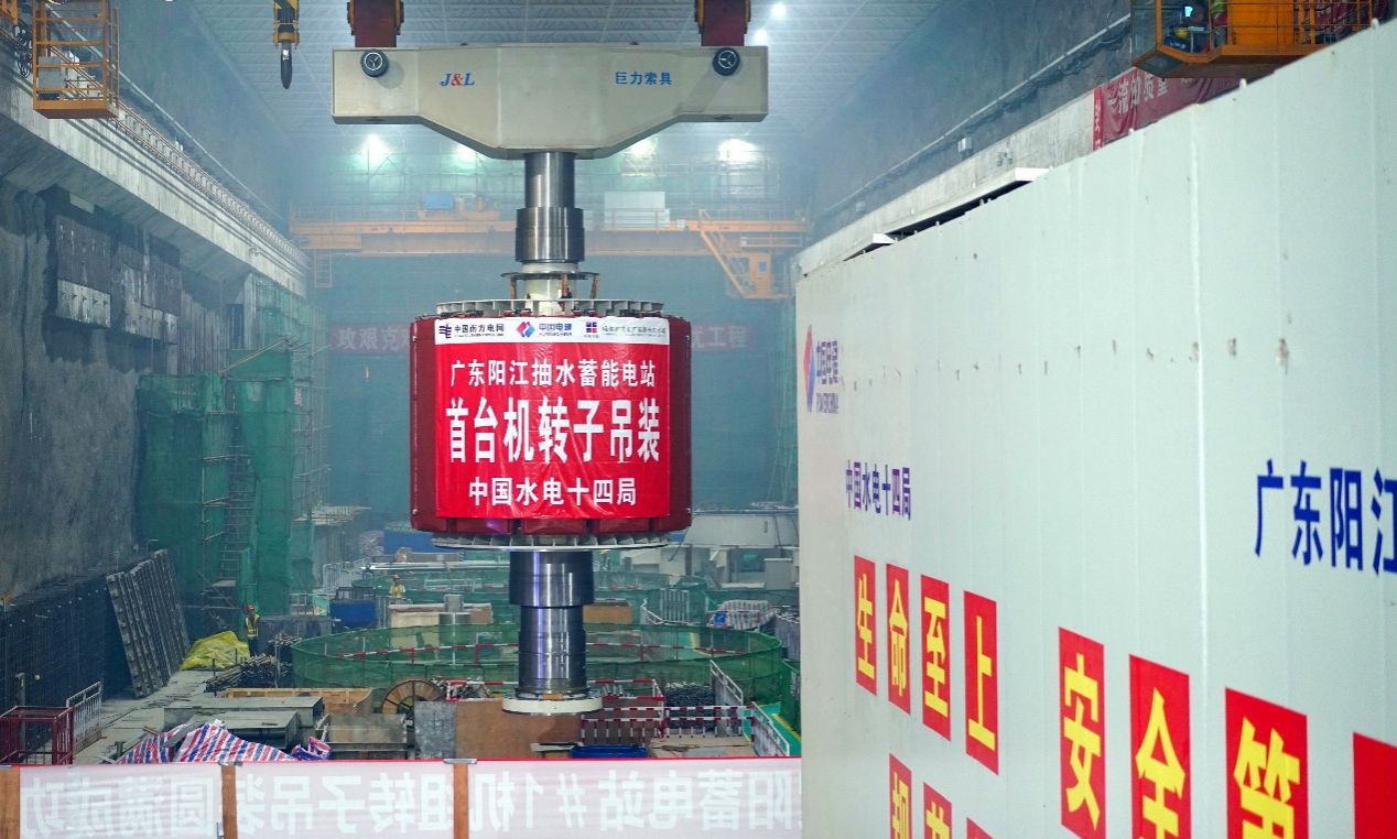 公司研制的陽江抽水蓄能項(xiàng)目首臺(tái)轉(zhuǎn)子成功吊裝